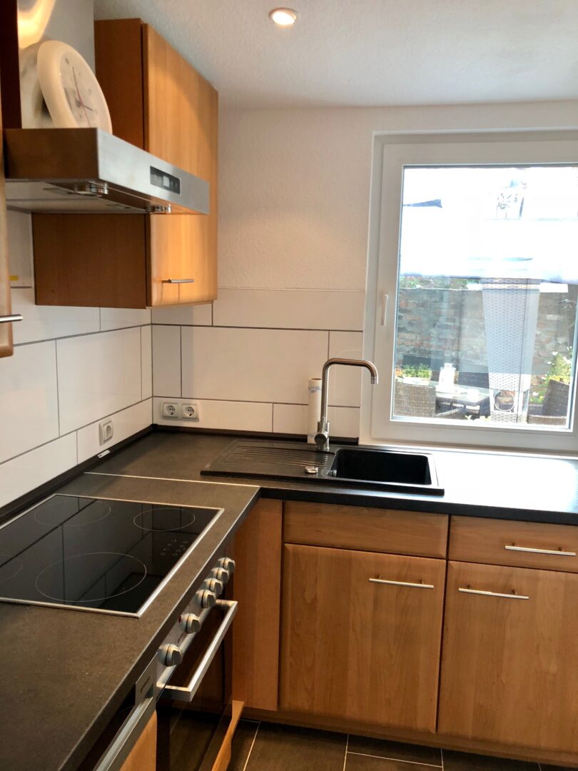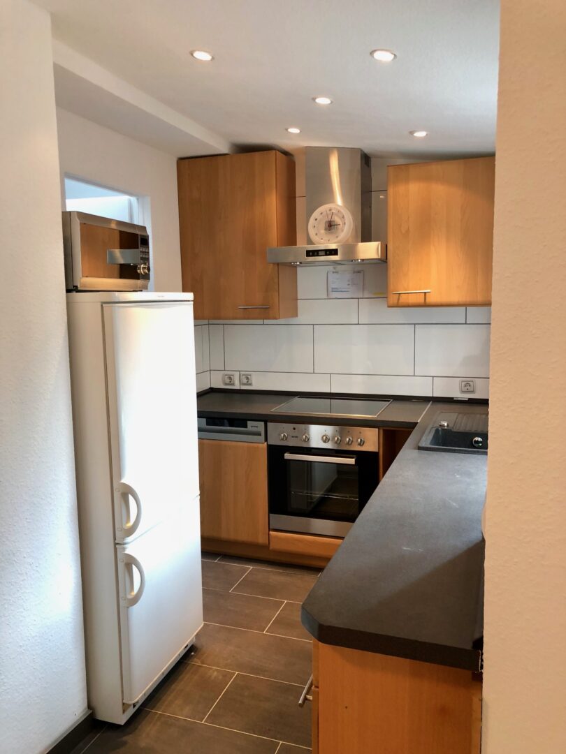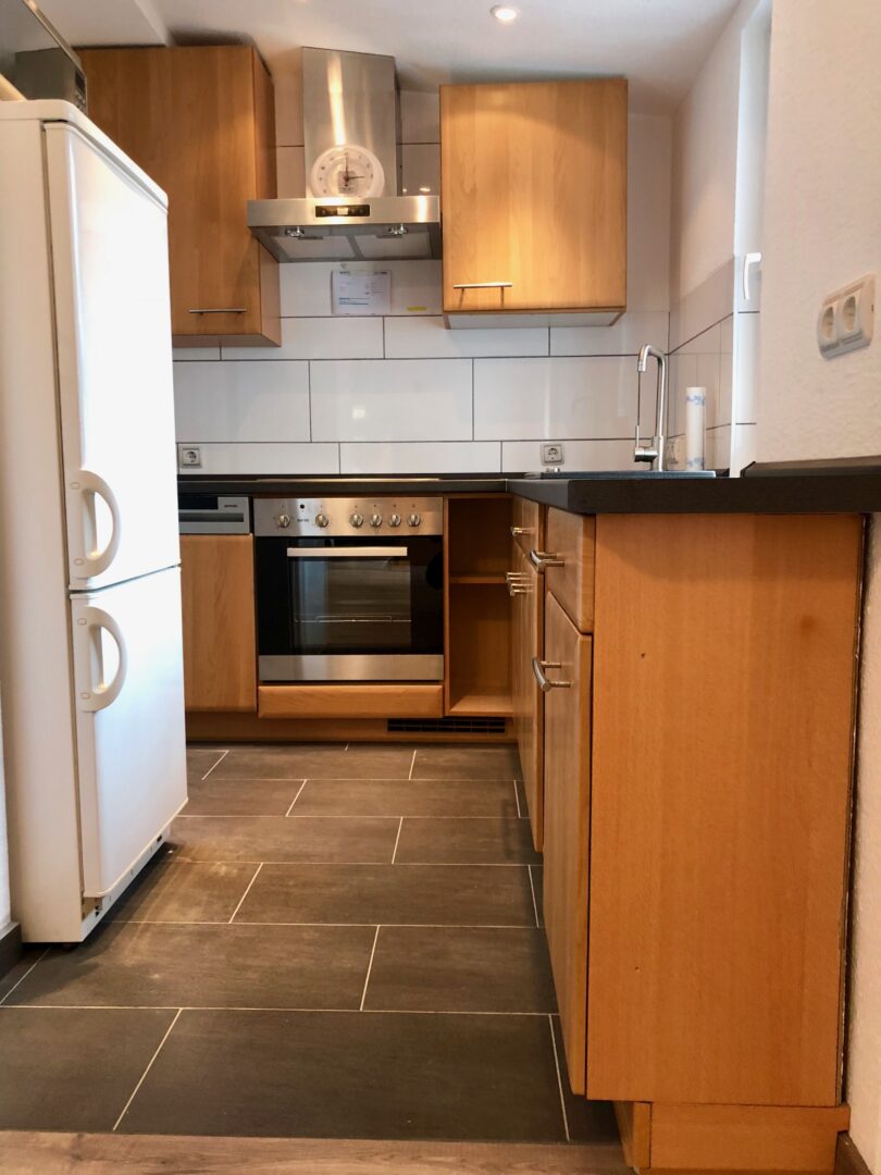 Das hier angebotene charmante 1-Zimmer Apartment mit hohen Decken und weißen Holzfenstern befindet sich in einem fünf Parteienhaus aus dem Jahre 1904 in bester Lage von Bonn-Poppelsdorf und ist im Hinterhaus des Gebäudes im Erdgeschoss gelegen. Betritt man das Apartment befindet sich linker Hand ein zweitüriger Kleiderschrank sowie ein Hochbett aus Holz beides in Weiß gehalten. Hier grenzt eine offene Einbauküche in Buchedekor mit folgenden Geräten: eine 45 Geschirrspülmaschine, ein Backofen-Edelstahl, ein Edelstahl-Ceranfeld, eine Edelstahl-Dunstesse, ein Kunstoffspülbecken sowie eine freistehende Kühlgefrier-Kombination, welche im Mietpreis inkludiert ist, an. Im Deckenberiech sind Halogenstrahler verbaut, sodass für ausreichend Licht gesorgt ist. Hier wiederum angrenzend befindet sich ein modernes Tageslicht Badezimmer mit großformatigen Fliesen im Wand- und Bodenbereich. Darüber hinaus verfügt das Badezimmer über einen Spiegelschrank mit Beleuchtung sowie über einen Unterschrank unter dem Waschtisch. Die Wandflächen des Apartment sind mit einer Tapete versehen und weiß gestrichen. Das Badezimmer ist modern und weiß/schwarz gehalten.