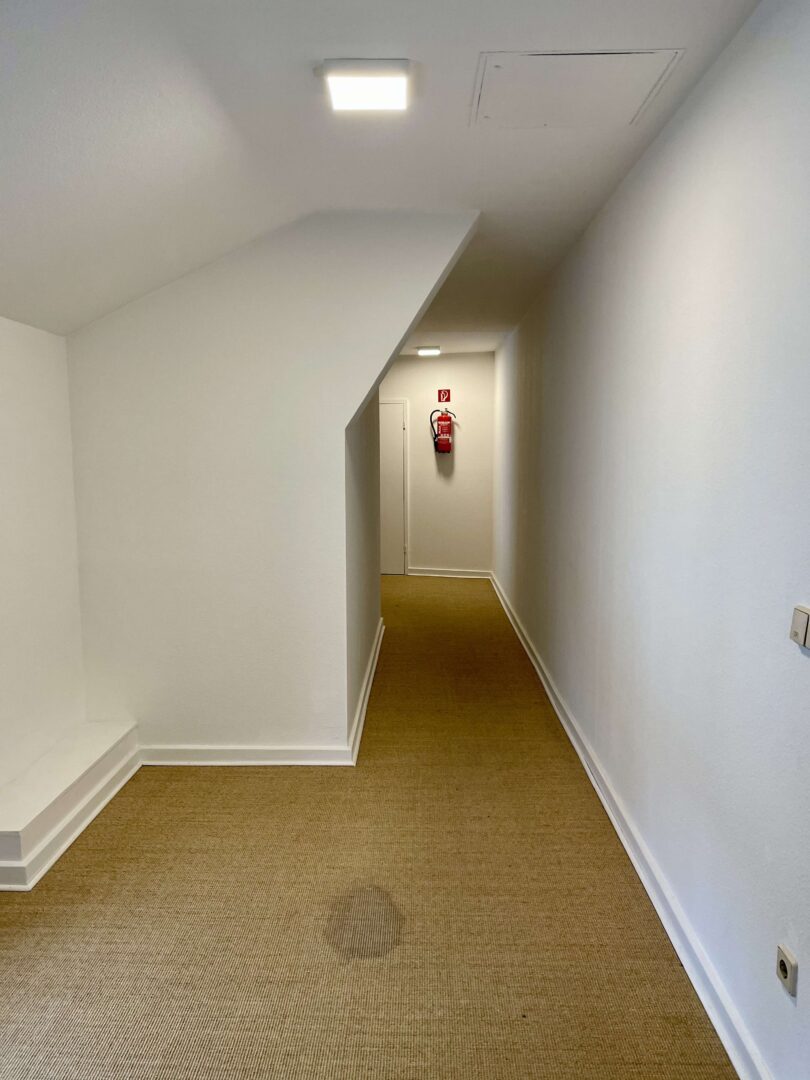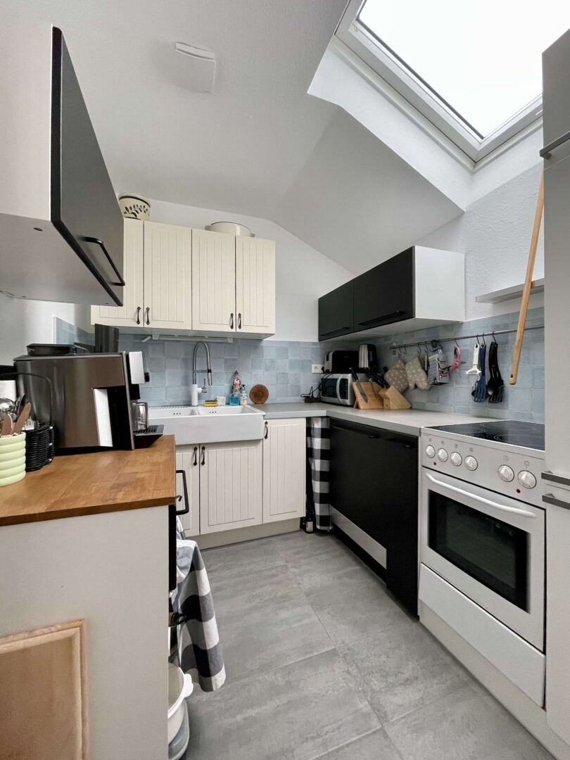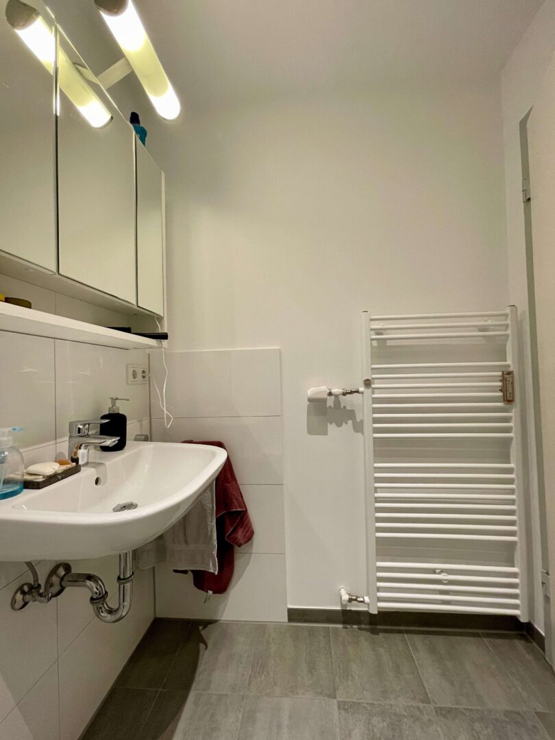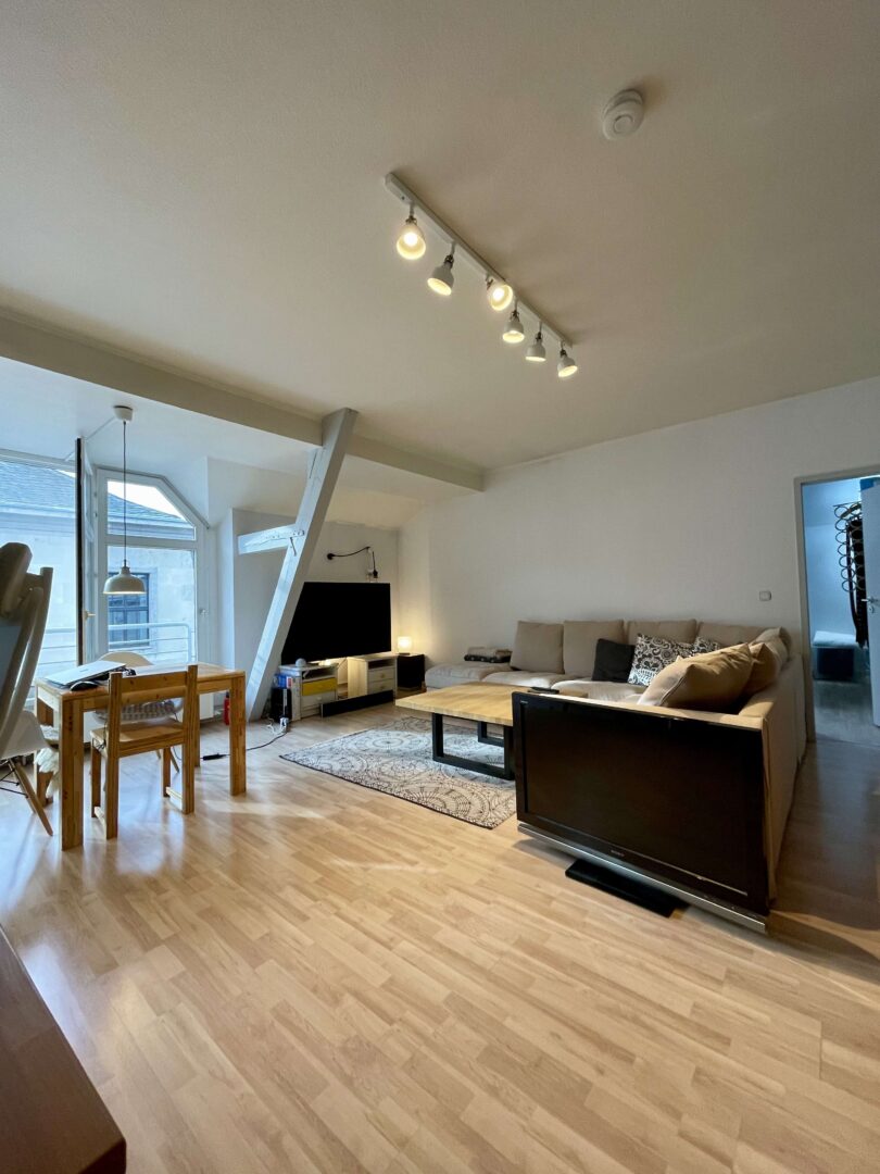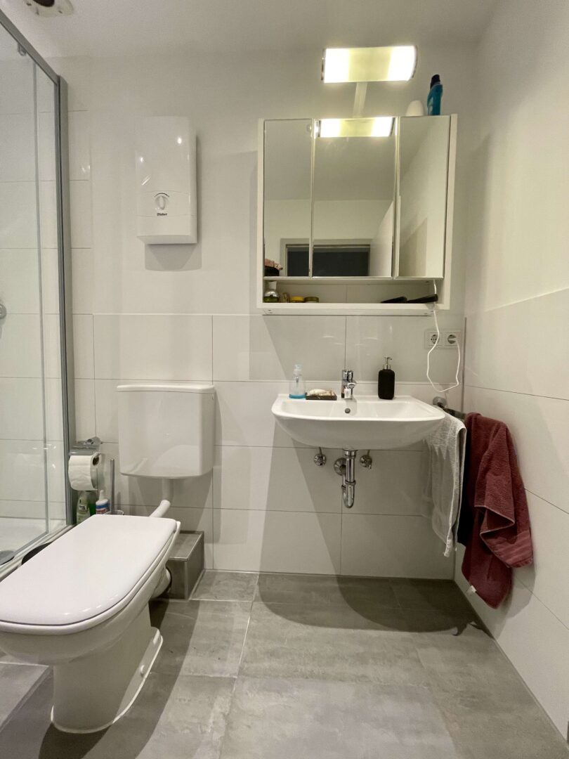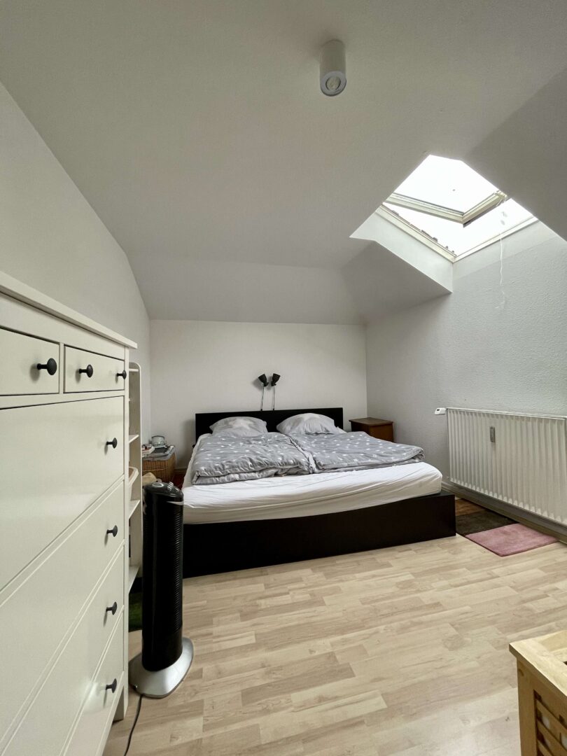 Die Wohnung befindet sich in einem sehr gepflegtem Wohn-/Geschäftshaus im Herzen von Neuss, das fortlaufend renoviert und modernisiert wurde. Sie erreichen die Wohnung über ein imposantes Treppenhaus. Die 2-Zimmer-Wohnung ist im Dachgeschoss des Hauses gelegen und verfügt, neben einem modernen Badezimmer und einer Küche mit hellem Fliesenspiegel, über Wohn-, Schlafzimmer. Diese charmante Wohnung ist ideal für einen berufstätigen Single und oder einem berufstätigen Paar, dass gerne alles Vorzüge eines zentrumsnahen wohnen zu schätzen weiß. Die Wände in den Räumen sind mit einer Raufasertapete versehen und weiß gestrichen. Der Bodenbelag ist eine heller Laminatboden.