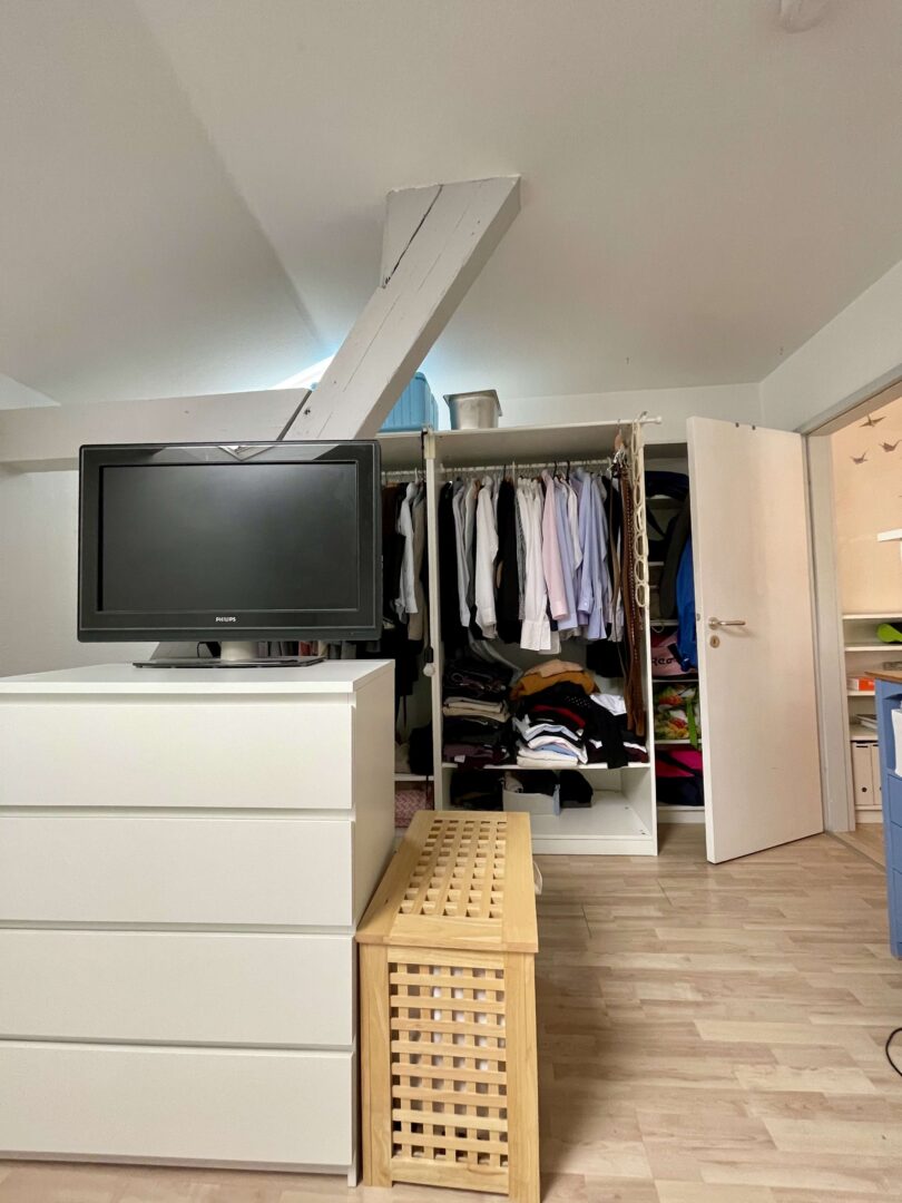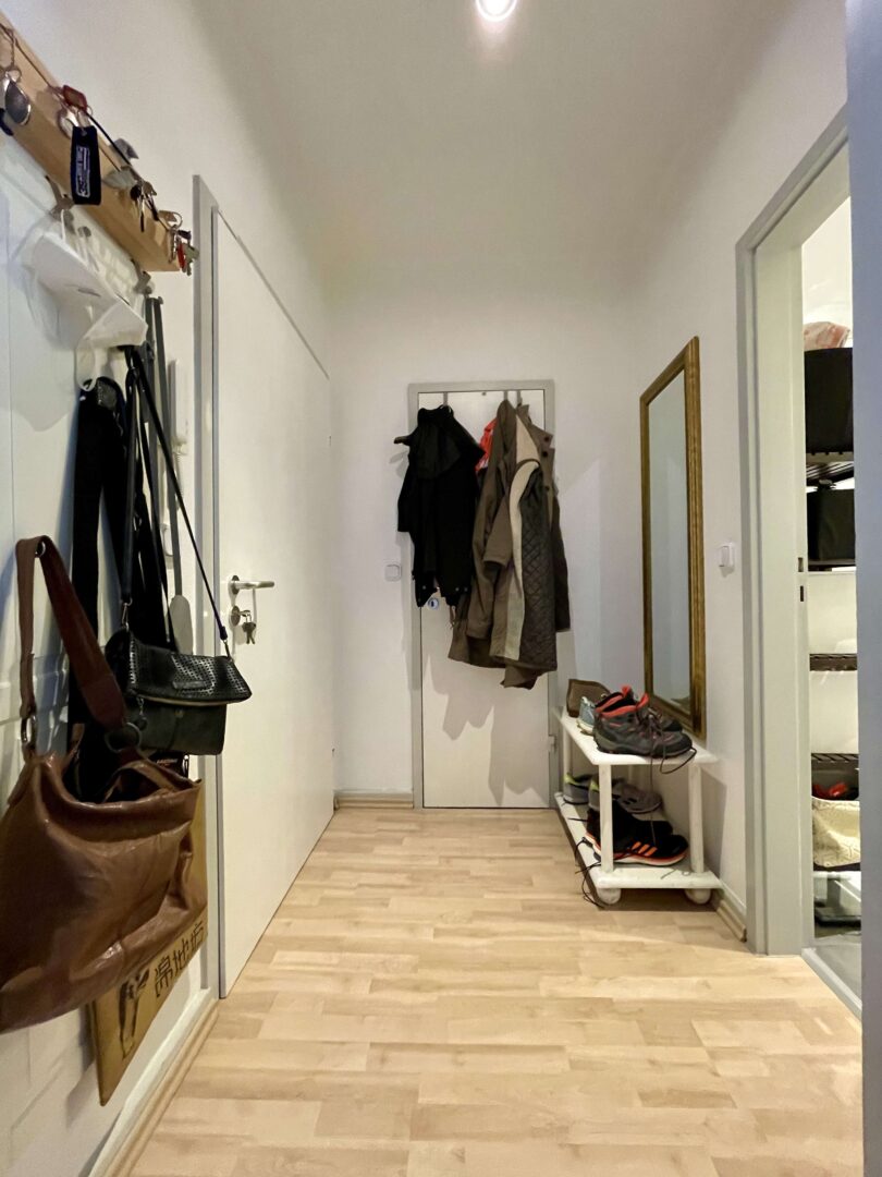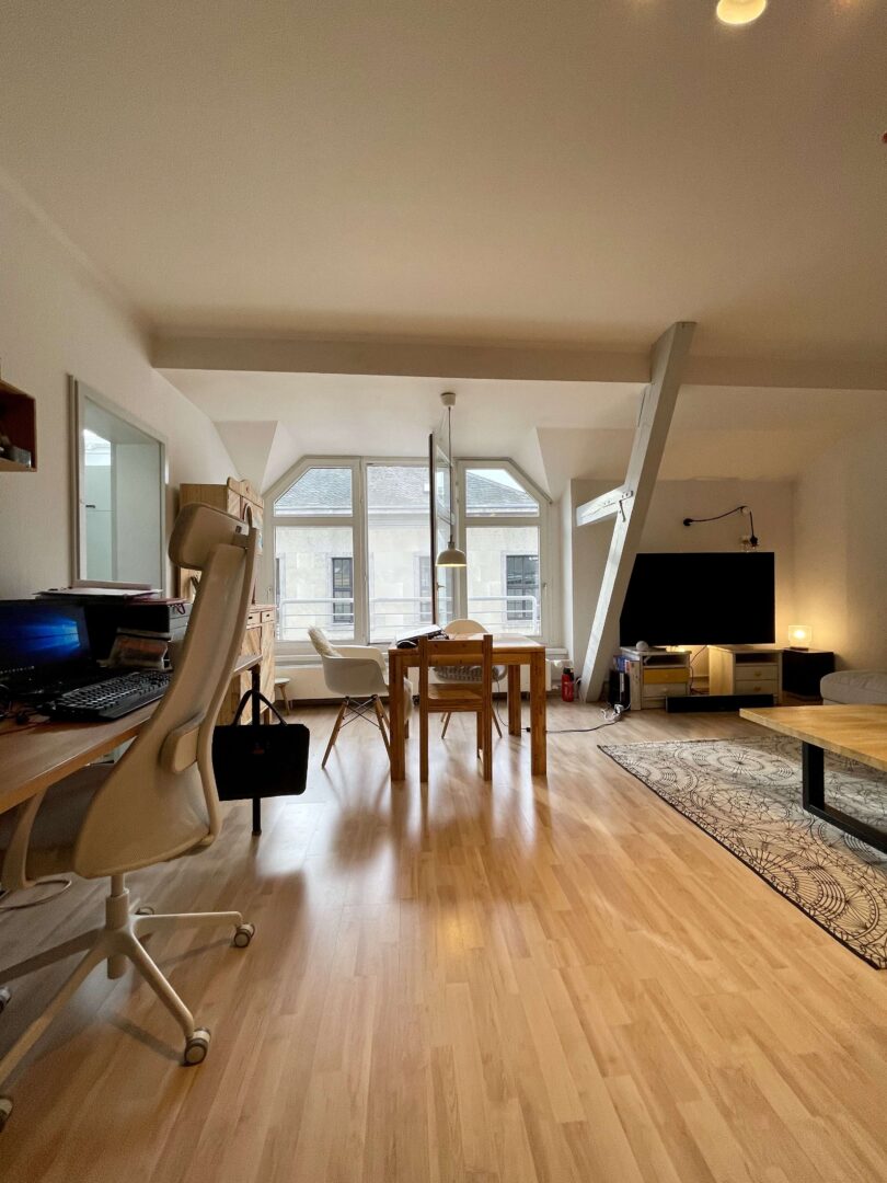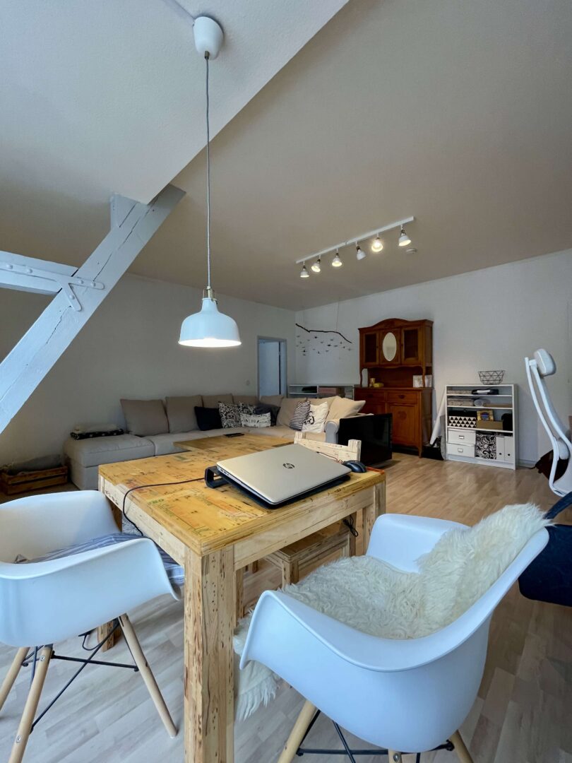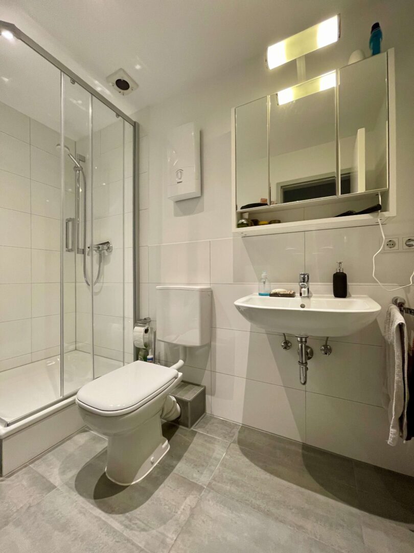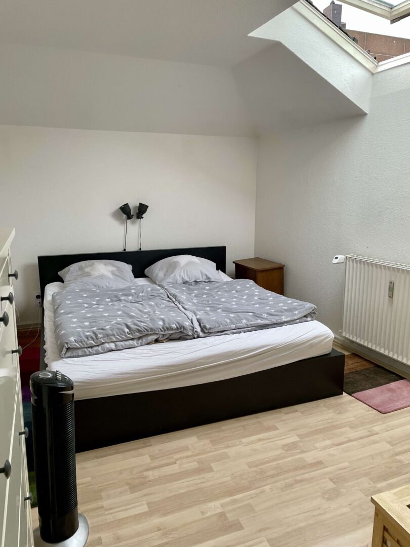 Die Wohnung befindet sich in einem sehr gepflegtem Wohn-/Geschäftshaus im Herzen von Neuss, das fortlaufend renoviert und modernisiert wurde. Sie erreichen die Wohnung über ein imposantes Treppenhaus. Die 2-Zimmer-Wohnung ist im Dachgeschoss des Hauses gelegen und verfügt, neben einem modernen Badezimmer und einer Küche mit hellem Fliesenspiegel, über Wohn-, Schlafzimmer. Diese charmante Wohnung ist ideal für einen berufstätigen Single und oder einem berufstätigen Paar, dass gerne alles Vorzüge eines zentrumsnahen wohnen zu schätzen weiß. Die Wände in den Räumen sind mit einer Raufasertapete versehen und weiß gestrichen. Der Bodenbelag ist eine heller Laminatboden.