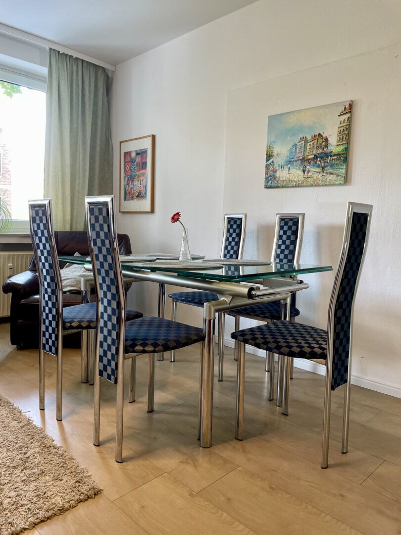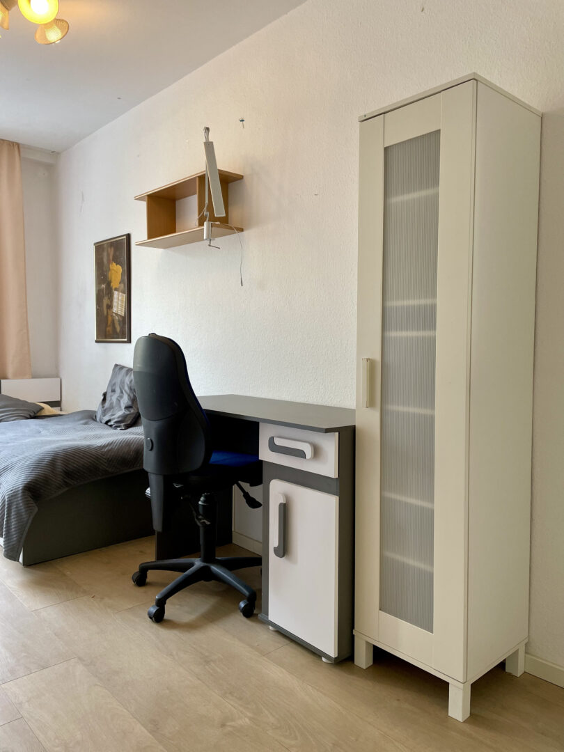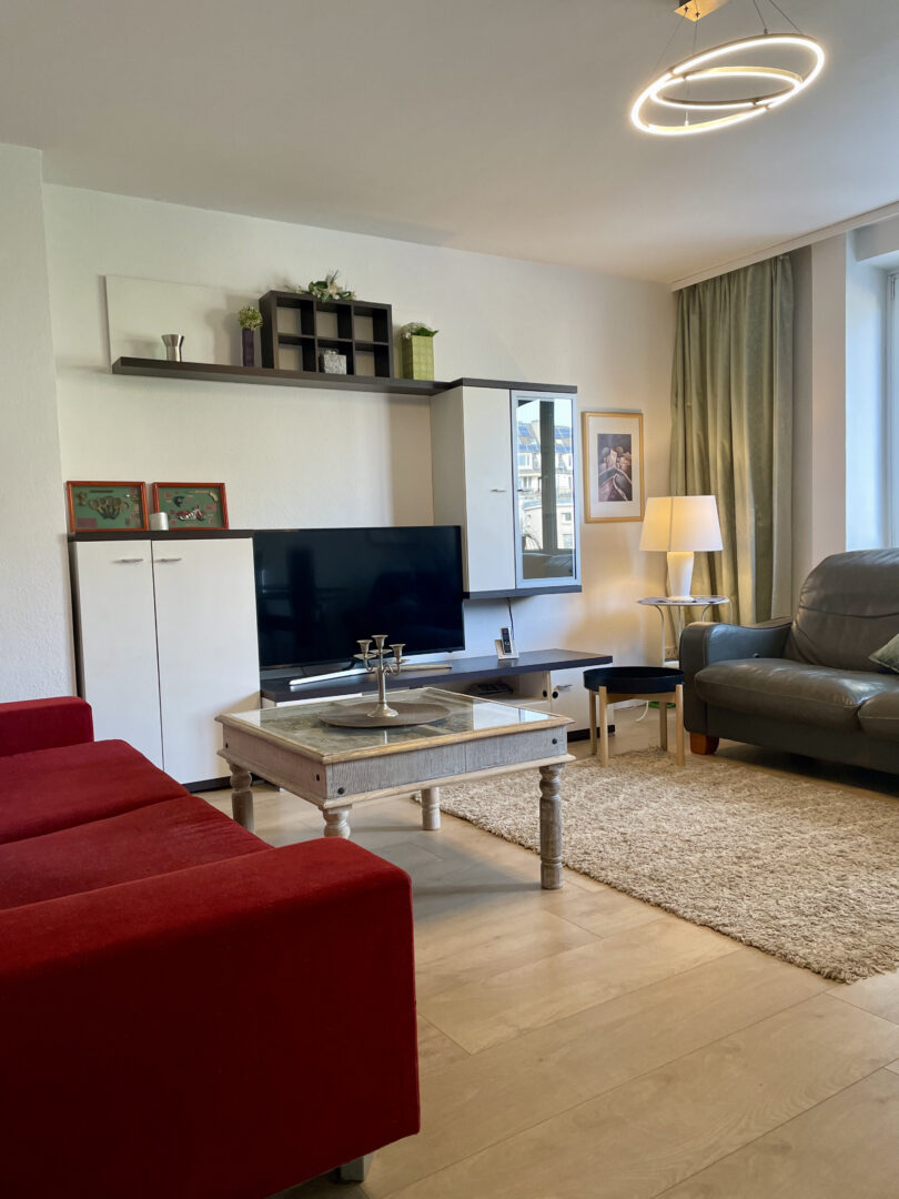 Obgleich Ihr neues Zuhause im Zentrum liegt, ist es ein Rückzugsort vom pulsierenden Stadtleben. Die helle und Lichtdurchflutete geräumige möblierte 4-Zimmer-Wohnung liegt im 1. Obergeschoss links des Mehrfamilienhauses mit insgesamt 6. Etagen. Über den einladenden Flur gelangen Sie zu den einzelnen Räumen. Von links nach rechts beginnend folgt das Tageslicht Badezimmer, der Abstellraum, die Küche mit Einbauküche, das Schlafzimmer, das Wohn-Esszimmer, Hier angrenzend das Arbeits-/Gästezimmer sowie das Kinderzimmer. Vom Schlafzimmer und der Küche aus haben Sie die Möglichkeit den Balkon zu betreten, der aufgrund der südlichen Ausrichtung zum Sonnen und Verweilen einlädt. Die Fenster in der Küche und im Schlafzimmer sind mit Rollläden ausgestattet, aufgrund dessen es möglich ist die Räume abzudunkeln. Der Laminatboden in Holz-Optik in den Räumen lädt Sie ein barfuß durch die Wohnung zu gehen. Das Tageslicht-Badezimmer ist charmant gefliest und sowohl mit einer Wanne, als auch mit einer Dusche ausgestattet. Die auf den Aufnahmen dargestellten Einrichtungsgegenstände runden das Angebot ab.