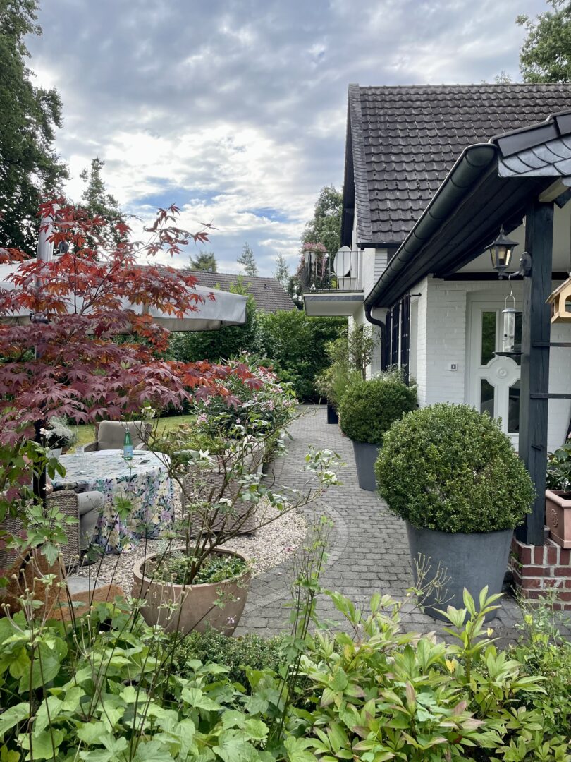 Eingefriedet durch Bäume und dichte Hecken entfaltet sich hier ein Garten, in dem die Sonne den ganzen Tag zu Gast ist und wo sich im Spiel von Licht und Schatten rund um Ihr neues Domizil vielfältige Rückzugsräume ergeben.