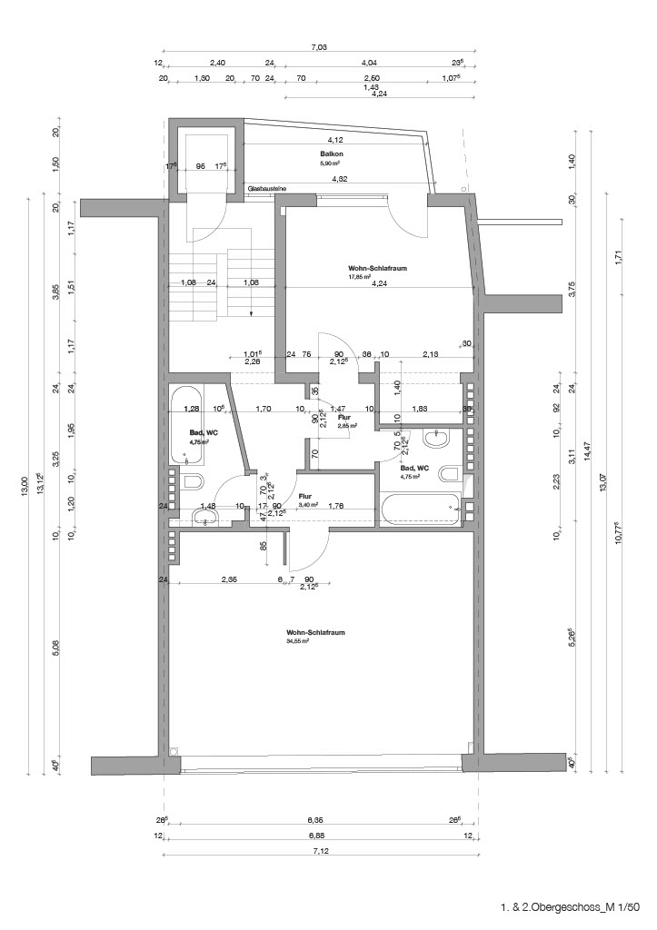 • Glattgespachtelte weiße Wand- und Deckenflächen