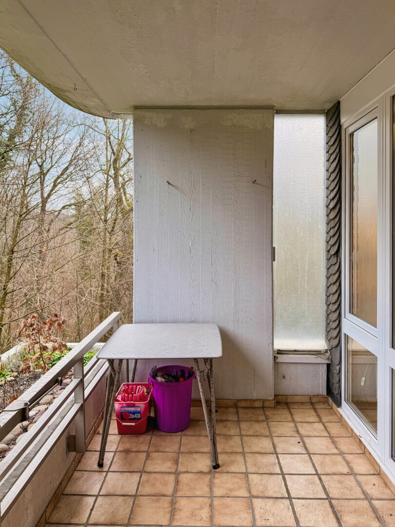 Die sonnige Loggia ist ein wahres Schmuckstück dieser Wohnung. Hier genießen Sie direkten Blick auf das angrenzende Naturschutzgebiet und den Wald, während die Ruhe und frische Luft Ihre Sinne beleben. Ein Ort, um zu entspannen, den Feierabend zu genießen oder die Natur zu beobachten – direkt vor Ihrer Haustür.