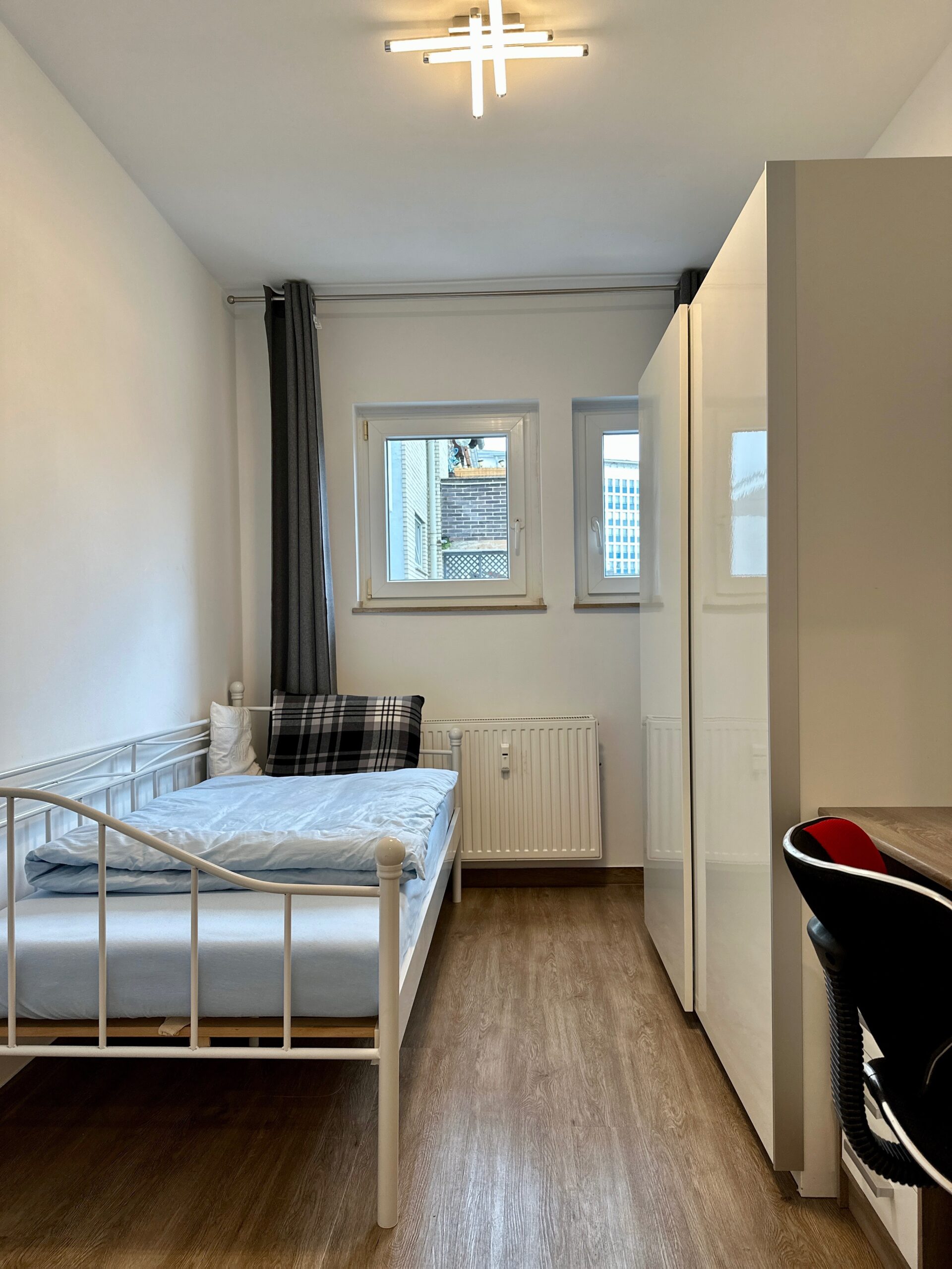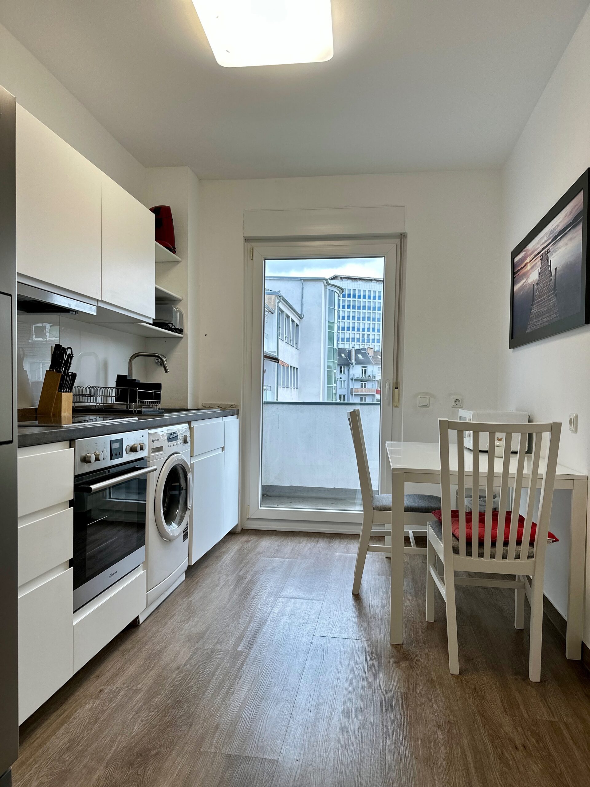 Obgleich Ihr neues Zuhause im Zentrum liegt, ist es ein Rückzugsort vom pulsierenden Stadtleben. Die helle und Lichtdurchflutete geräumige möblierte 3-Zimmer-Wohnung liegt im 3. Obergeschoss links des Mehrfamilienhauses mit insgesamt 6. Etagen. Über den einladenden Flur gelangen Sie zu den einzelnen Räumen. Von links nach rechts beginnend folgt das Gäste/Arbeitszimmer, Tageslicht Badezimmer, die Küche mit Einbauküche, das Schlafzimmer, das Wohn-Esszimmer. Vom Schlafzimmer und der Küche aus haben Sie die Möglichkeit den Balkon zu betreten, der aufgrund der südlichen Ausrichtung zum Sonnen und Verweilen einlädt. Die Fenster in der Küche und im Schlafzimmer sind mit Rollläden ausgestattet, aufgrund dessen es möglich ist die Räume abzudunkeln. Der PVC-Designbelag in den Räumen lädt Sie ein barfuß durch die Wohnung zu gehen. Das Tageslicht-Badezimmer ist charmant gefliest und sowohl mit einer Wanne, als auch mit einer Dusche ausgestattet. Die auf den Aufnahmen dargestellten Einrichtungsgegenstände runden das Angebot ab.