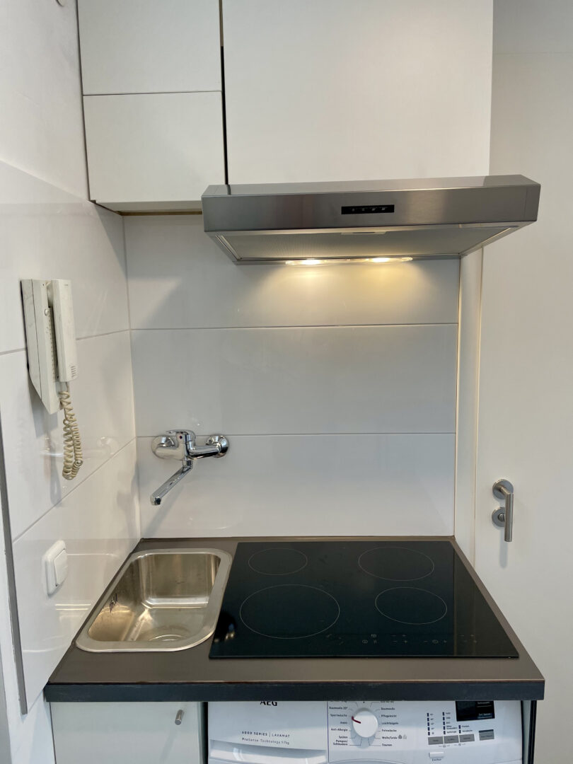 Zur Anmietung steht ein lichtdurchflutetes modern eingerichtetes Apartment nach Sanierung im Erstbezug im 3.OG mit Lift in Düsseldorf-Pempelfort gelegen. Hierbei wurde ein wunderschönes Eiche Massivholzparkett im Wohnschlafraum, Fliesenboden im Küchenbereich und Badezimmer, das Badezimmer neu gestaltet mit Dusche, WC, Waschbecken, Spiegelschrank, Duschgarnitur. Auf ca. 25 m² finden Sie alles was Sie zum gemütlichen & modernen Wohnen benötigen. Durch die intelligente Gestaltung des Apartments wird hier jeder Quadratmeter effizient genutzt. Zur Ausstattung gehören unteranderem: Cerankochfeld, Kühlschrank, Mikrowelle, Wasserkocher, Flatscreen TV, Handtücher, Bettwasche, Waschmaschine und vieles mehr.
