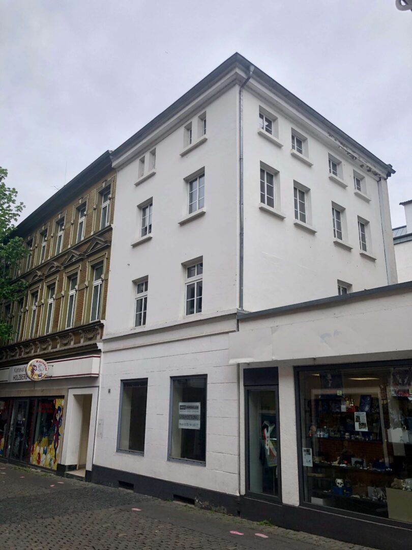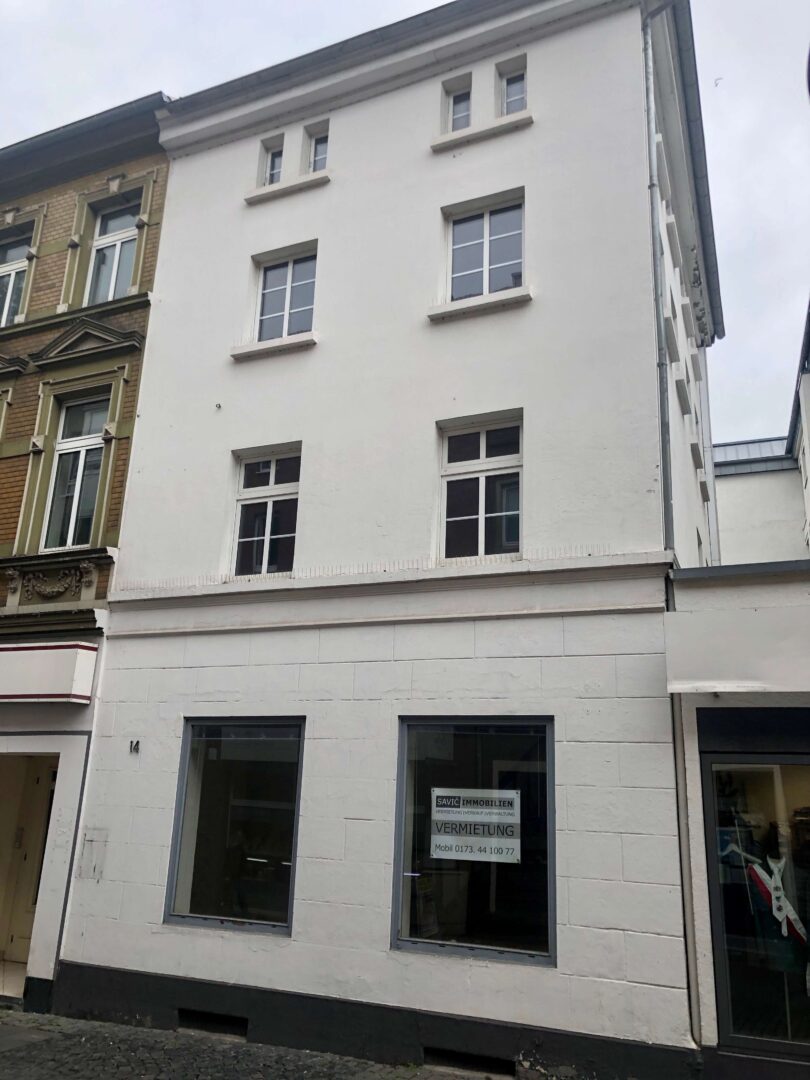 Das Wohn-/Geschäftshaus gliedert sich in 4 Etagen auf, welche über Treppen zu erreichen sind und befindet sich am Tor zum Zentrumskern in einer Seitenstraße, welche an einer belebten Haupteinkaufsstraße, der Oberstraße in Neuss angrenzt. Die Mietfläche kann nach Ihren Wünschen hergerichtet werden, je nachdem wie Sie Ihr Raumkonzept umsetzen möchten. Die Investitionen des Vermieters hinsichtlich: Renovierung, Bodenbeläge, Elektroinstallation verstehen sich im üblichen Rahmen für Gewerbeflächen. Darüberhinausgehende Investitionen des Vermieters für den Mieter, wie z. B. Pantry etc. sind einzeln abzustimmen und richten sich nach den Modalitäten des Mietvertrages, z.B. hinsichtlich: Wertsicherungsklausel, Mietanpassungen, Sicherheiten, Investitionsvolumen, Bonität/Referenzen des Mieters, Mietvertragslaufzeit etc.