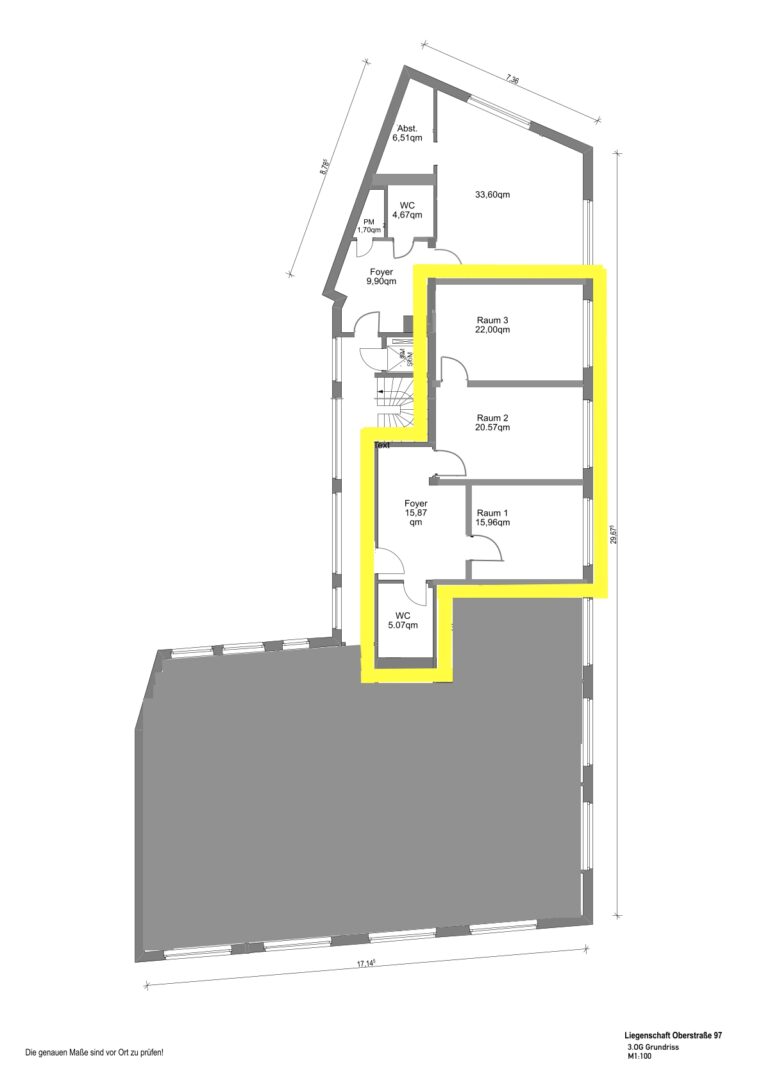 Die Büroflächen, bestehend aus drei einzelnen Räumen, am Tor zum Zentrumskern befinden sich in einem sehr gepflegten Büro- und Geschäftshaus an einer belebten Haupteinkaufsstraße, der Oberstraße in Neuss. Die Mietfläche im 3.OG li mi gelegen ist komplett renoviert bzw. saniert unteranderem wurde ein neuer Nasszellenbereich geschaffen, die Elektroinstallation mit Unterverteilung erneuert, eine EDV-Verkabelung Cat7 eingebracht, ein PVC-Designbodenbelag mit passender Sockelleiste sowie satinierte Glastüren als Raumabschlusstüren. Durch die zahlreichen Fenster ist die Fläche mit viel Tageslicht durchflutet.
