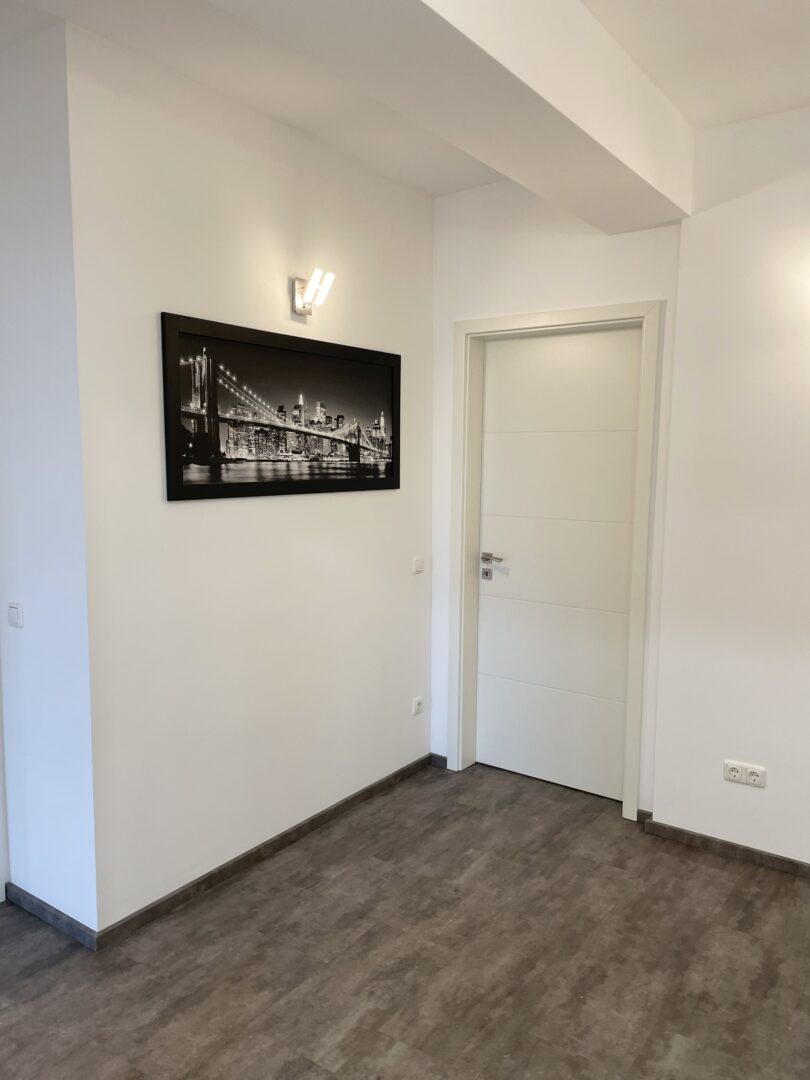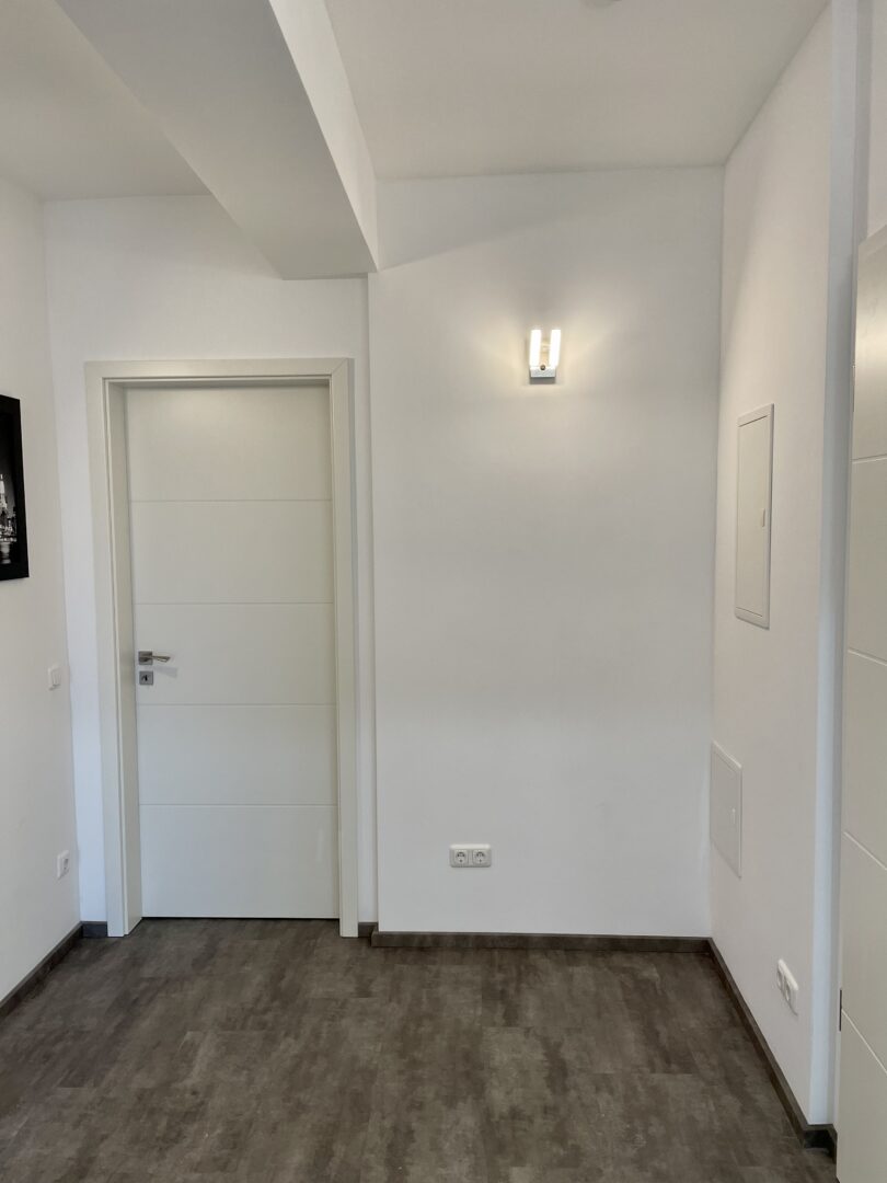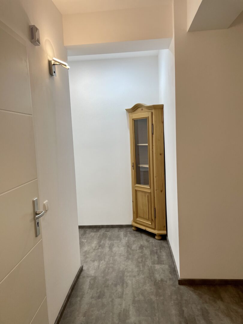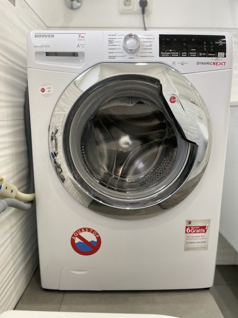 Der Design PVC-Bodenbelag in den Räumen sorgt für ein angenehmes Gehgefühl, sodass Sie die Wohnung auch barfuß genießen können. Das Badezimmer ist mit einer modernen Fußbodenheizung ausgestattet, die den Fliesenboden angenehm warm hält. Zusätzlich ist es sowohl mit einer Badewanne als auch einer bodengleichen Dusche ausgestattet. Auf einem Podest befindet sich der Anschluss für die Waschmaschine, welche bereits im Mietpreis enthalten ist.