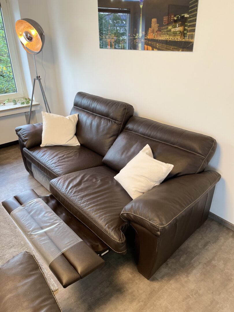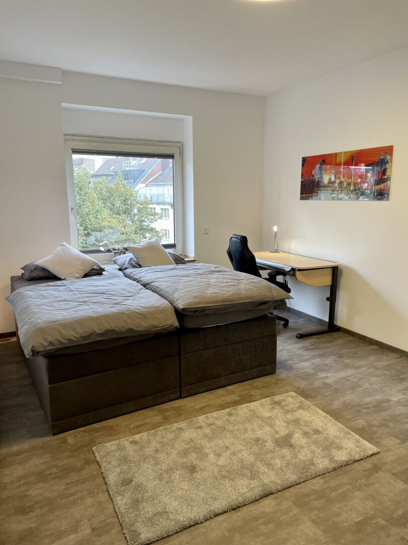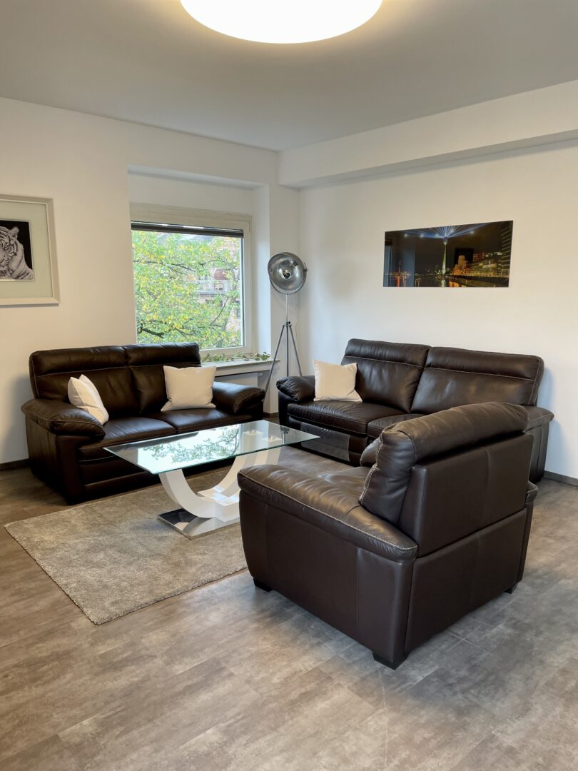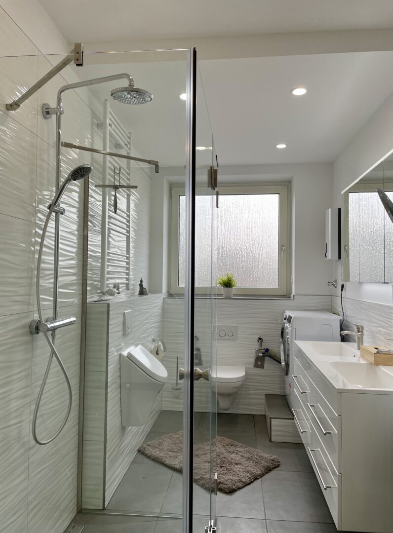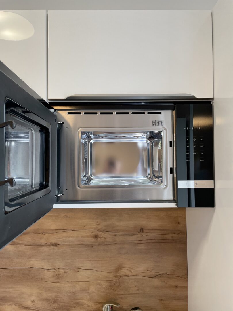 Der Design PVC-Bodenbelag in den Räumen sorgt für ein angenehmes Gehgefühl, sodass Sie die Wohnung auch barfuß genießen können. Das Badezimmer ist mit einer modernen Fußbodenheizung ausgestattet, die den Fliesenboden angenehm warm hält. Zusätzlich ist es sowohl mit einer Badewanne als auch einer bodengleichen Dusche ausgestattet. Auf einem Podest befindet sich der Anschluss für die Waschmaschine, welche bereits im Mietpreis enthalten ist.