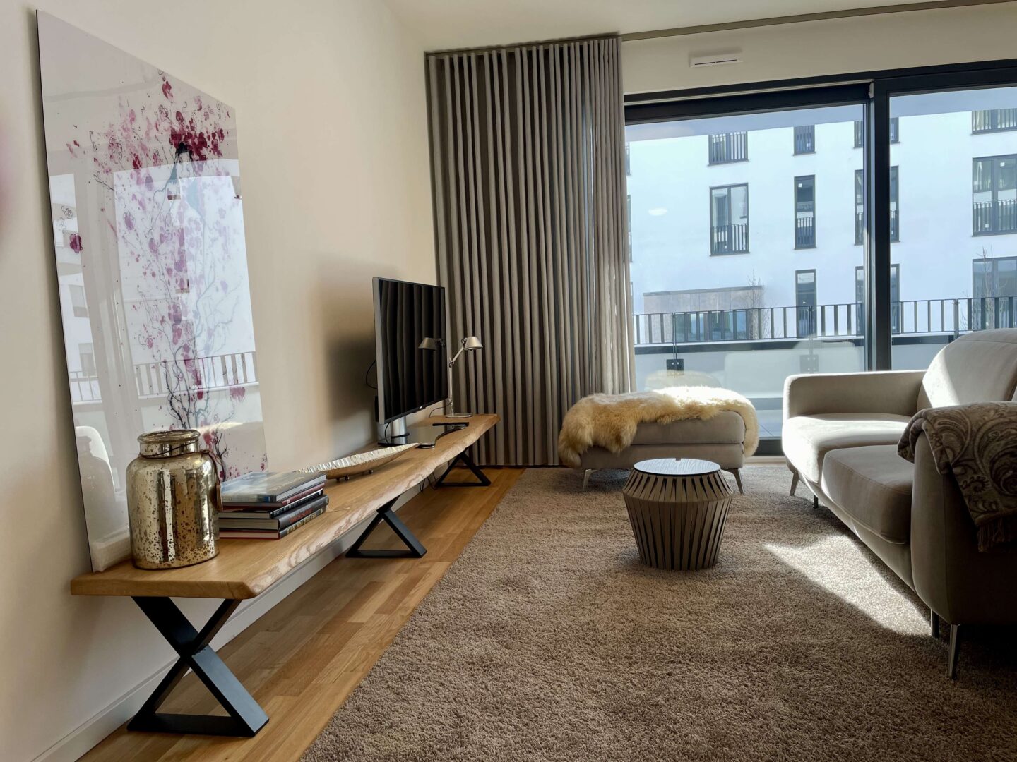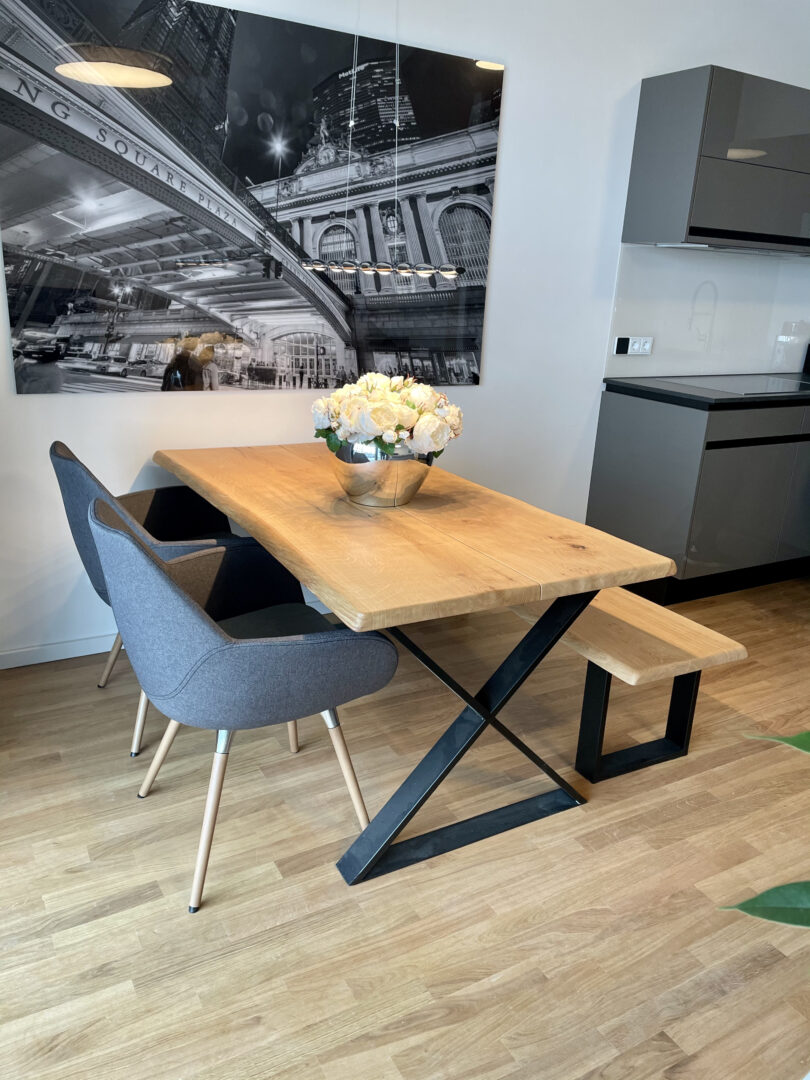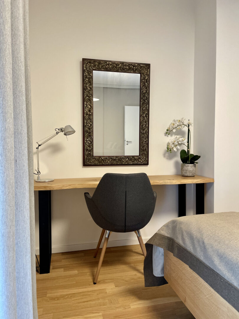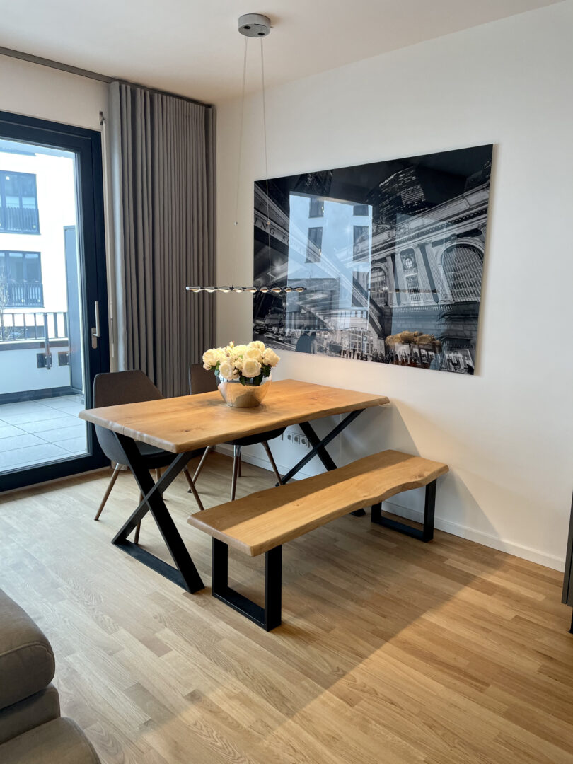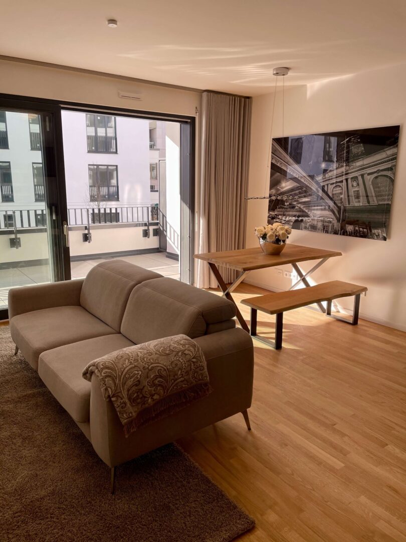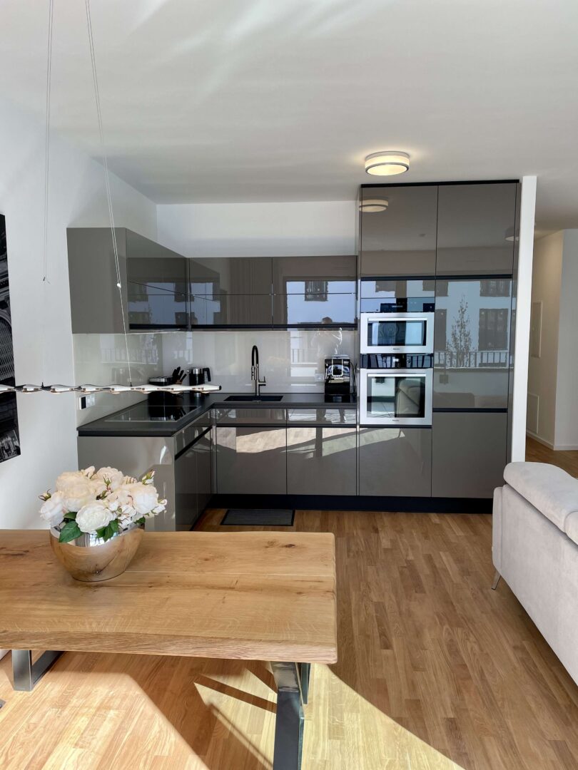 Mit dem Projekt „PANDION FRANCIS“ entsteht ein lebens- und liebenswertes Quartier mitten in Düsseldorf. Obgleich Ihr neues Zuhause im Zentrum liegt, ist es ein Rückzugsort vom pulsierenden Stadtleben. Die helle und geräumige stilvoll vollmöblierte 3-Zimmerwohnung liegt im 2. Obergeschoss rechts des Mehrfamilienhauses mit insgesamt 5 Etagen. Über den einladenden Flur gelangen Sie in den gemütlichen Wohn- und Essbereich mit offener Küche. Vom Wohnbereich gelangen Sie in den von der Straßenseite abgewandten Balkon, der aufgrund der südlichen Ausrichtung zum Sonnen und Verweilen einlädt. Die Fenster sowie die Schiebetür zum Balkon durchfluten die Wohnung mit ausreichend Tageslicht. Ferner sind die Fenster mit elektrischen Rollläden versehen, die die Wohnung bequem verdunkeln lassen und im Sommer einen optimalen Wärmeschutz ermöglichen. Der Parkettboden kann durch die integrierte Fußbodenheizung angenehm erwärmt werden und lädt Sie barfuß ins Bad ein. Das Badezimmer ist modern gefliest und sowohl mit einer Wanne als auch mit einer bodengleichen Dusche ausgestattet. Weiteren Komfort bietet das zusätzliche Gäste-WC inkl. Dusche. Die Wohnung verfügt ebenfalls über einen funktionalen Abstellraum mit Anschluss für die Waschmaschine. Der Innenhof ist von einer gepflegten Grünfläche mit Bäumen, Hecken und Stauden geprägt. Die gesamte Außenanlage wurde durch einen Landschaftsarchitekten liebevoll gestaltet. Zudem befindet sich in der Mitte der Außenanlage ein Kinderspielplatz. Das Wohnhaus bietet eine separate Ein- und Ausfahrt zur Tiefgarage, die Toranlage lässt sich bequem über einen Minisender bedienen. Die Tiefgarage ist 1-geschossig und verfügt über Müll-, Fahrradräume, Kellerflure und -abteile. Ein eigener Kellerabteil rundet das Angebot ab.