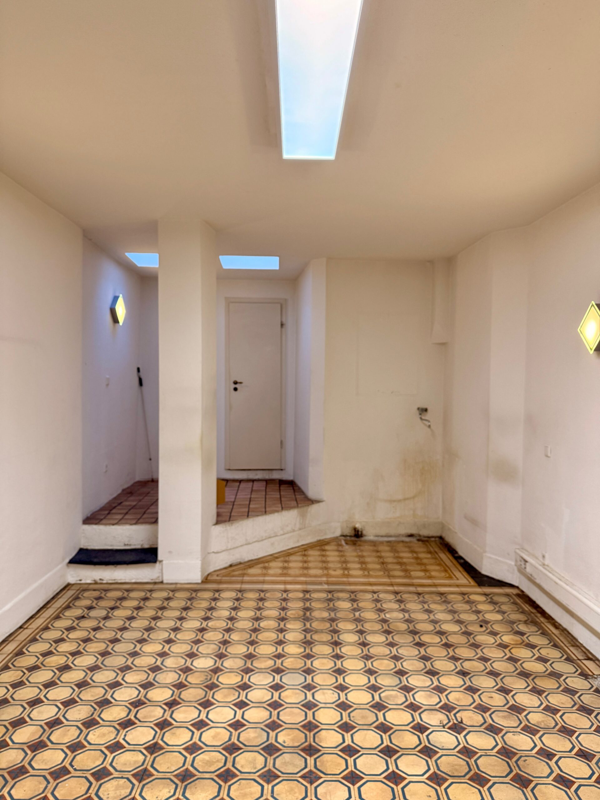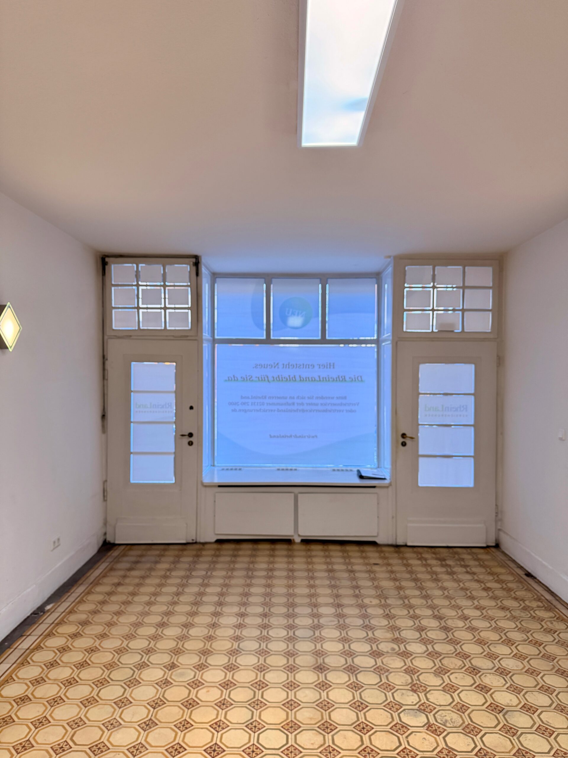 • Erdgeschoss: Großzügige Verkaufs- oder Ausstellungsfläche mit Originalfliesen
