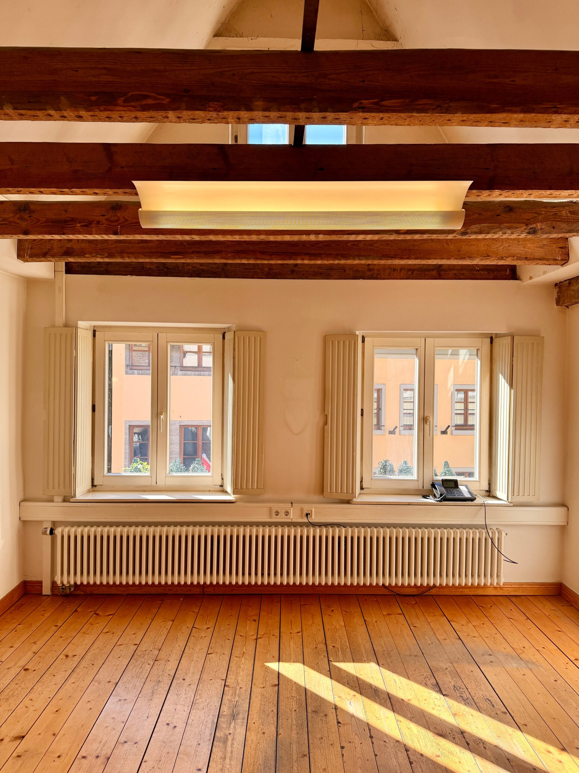 • 1. Obergeschoss: Zwei helle Räume (Straßenseite & Hinterhaus), ideal für Büro oder Präsentation